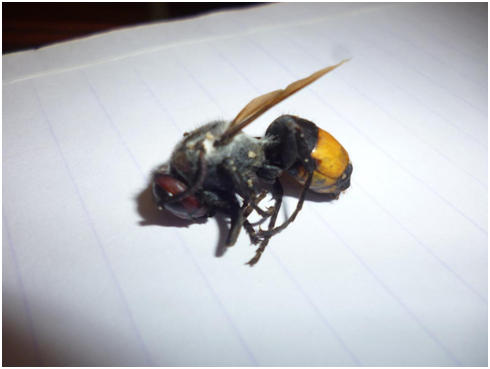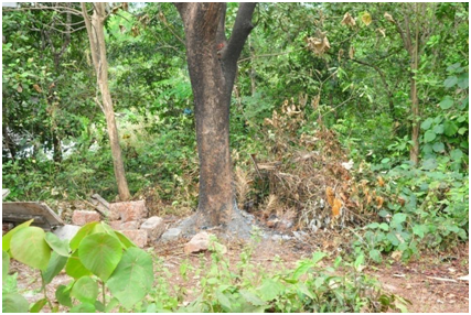The scene was at Laxmigudde in Someshwar village of Dakshini Kannada district of Karnataka. It was a semi forested area with sparse population of people. The houses were surrounded by dense trees. It was an early summer season and a very humid day. The scene was a house under construction, with a front area covered with fallen leaves and a big tree. The tree was on edge of ground with roots exposed on one side. The exposed area was burnt and ash was seen near it (Figure 1). A remnant of wasp hive could be seen under it. A piece of the hive was broken (Figure 2) and taken as a sample along with one of the dead wasp for identification of the species (Figure 3).
