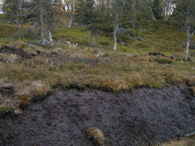 Figure 2 Alpine landscape with sparse birch forest growing on top of a peaty landscape. Just waterfilled underground peat with no strength but looks ok from above view.
