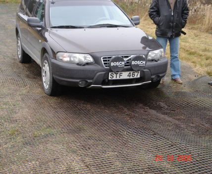 We let our project leader take his car and ran 10 times back and forth on our newly reinforced peatbog. He just stepped out from his car and looked surprised. It was a 2 tonnes car with 4WD and there were no marks after the driving (Figure 8)!