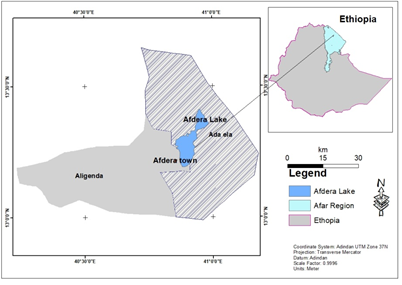 The study on the socio-economic aspects of the respondents was conducted in Afdera wereda (in Zone 2) of the Afar National Regional State. Two kebeles, namely: Aligenda (N=59) and Adaela (N=33) that are bordering the Lake were systematically selected for the study (Figure 1). Afdera wereda has an area of 7,435.45 km2. The total population of the wereda is 32,225, of which 18,191 are men and 14,034 are women. It has a population density of 4.33. A total of 4,803 households exist in the wereda, which results in an average of 6.7 persons per household. Of the total human population, 98.6% are Muslims, and 1.34% are Orthodox Christians.9