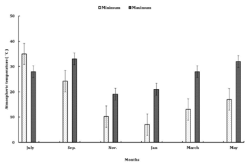 Figure 1(A) Monthly maximum and minimum atmospheric temperature for study area in Garhwal Himalayas during the study period from July 2008-2009.