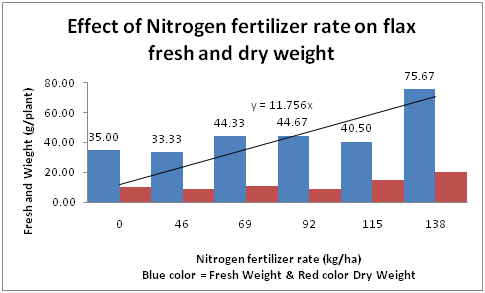 The experiment was laid out in a randomized block design (RCBD) with 3 replication and 6 treatments. The plot size is 1.5m X 2m. The treatment will consist of (0, 46, 69, 92, 115 and 138Nkg ha-1). The flax cultivar namely Belay was the main flax variety. A distance of 0.6m between plot and 0.75m between block was established and seed was drilled on the row 10cm x10cm apart in intra row. For each agronomic parameter 10 guarded plants were taken randomly from each subplot for agronomic parameters. The recorded agronomic characters included as follows: Plant height (cm)/plant, Number of tillers/plant, Number of branch/plant, Branch height/plant (cm)/plan, Fresh Weight (g)/plant, Dry weight (g)/plant, Number of pod per plant or capsule.