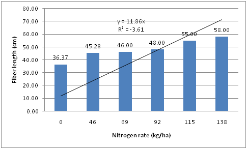 A field experiment was conducted during at Debre Birhan Research Station. The experiment was laid out in randomized block design with three replication of six treatments (0, 46, 69, 92, 115 and 138N kg ha-1). Flax fiber was rated in water for 15days and then after dried in shed. We comp bed and processed the fibr with prototype we made at the DBU. The result showed that all agronomic parameters were significantly correlated with nitrogen fertilizer level. The result showed that there was statistically significant response with nitrogen fertilizer rate. Agronomic parameters showed also an increasing trend to fertilizer rate levels. Increase of Nitrogen fertilizer rate increased the flax fiber length. About 58cm fiber length was obtained from 138kg N/ha fertilizer rate and the lowest was in the control treatment. Finally, we recommend that nitrogen fertilizer has great impact on flax growth, development and fiber length.