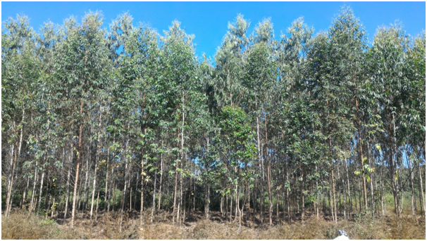 The entire plantation undertaken by SARA in its vicinity of around 25-300 kms in Karnataka and Maharashtra to ensure a sustained supply of raw materials to mills for its use. SARA-WCPM raised plantations in all type of soils and environmental conditions. The section wise geographical data are given in (Table 2). Prior plantations all soil and site parameters were studied. Further, land was cleaned and dozed with dozer. All the debris was removed from the field prior ripping. A spacing of 3x1.5 m is being adopted in all sections. Superior planting stock from SARA-WCPM hi-tech nursery provided to all sections. All plantations were done during rainy season from July-August every year. The plantations were raised in dry area with a rainfall of 500-750 mm to High rainfall area having rainfall of 2000-3000 mm. Site specific clones of Eucalyptus, Acacia, Subabul and Casuarina were adopted. Majority of plantations are being taken as Eucalyptus plantations. Clone no. 7, 2135, 106, 103, 316, C-4, IFGTB-1 were planted in block plantation considering a spacing 3m row to row and 1.5 m plant to plant and in one acre 888 plants were planted (Figure 2).