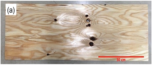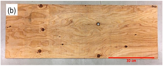 Table 1 summarizes the statistical data for MOE and MC. Douglas-fir veneer has higher mean MOE value of 13.7 GPa than 7.4 GPa of Japanese cedar veneer, with wider sample variance around 16 GPa compared to 9 Gpa, respectively. The mean MC for Japanese cedar veneer was 20.0% and 15.0% for Douglas-fir veneer. The range of MC for both Japanese cedar veneer and Douglas-fir veneer is around 17-18%.