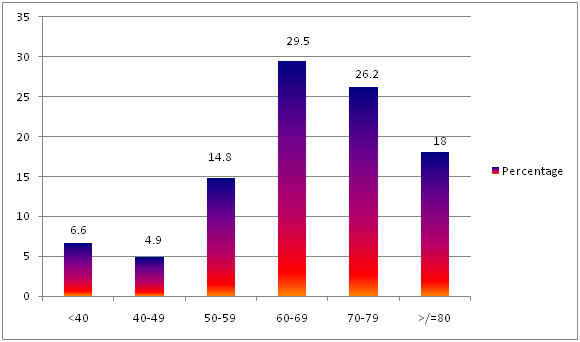 A total of 118 cases of suspected colorectal cancer were identified on lower gastrointestinal endoscopy during the period January 2012 to December 2015. Females accounted for 63 cases (53%) (Figure 1). The average age at diagnosis was 64.8 years, with 29.5 % of all cases occurring in the seventh decade of life (Figure 2). With respect to site of lesion, left-sided lesions were more common (73%) (Figure 3) with rectal lesions being found in 46% of cases. Lesions of the ascending colon, including the caecum, were found in 27% of cases. The three main causes for referral for colonoscopy were suspected colorectal cancer, gastrointestinal bleeding and anaemia (Figure 4). In this study females were found to account for more suspected cases of colorectal cancer than males. It has been found in previous studies that the incidence of CRC was more common in females than males, in older persons (more than 65 years).7,8 The average age of persons in this study was 65. The older age of the patients in this study reflects that found in prior studies where the incidence of CRC was found to increase with age.4–6 Risk factors for CRC include increasing age, familial and life-style related factors- such as smoking, sedentary lifestyle, obesity, alcohol use, high consumption of animal fats and red meat. There is an increased risk with a personal history of adenomatous polyps and inflammatory bowel disease as well as a family history of adenomatous polyps and colorectal cancer.5 In terms of diet and its association with colorectal cancer, countries that consume more red meat, processed meats, animal fats and refined carbohydrates have been shown to have an increased risk of colorectal cancer. In developed nations like North America and Europe where large amounts of these are consumed the incidence of colorectal cancer is higher than less developed countries like Africa, rural India, parts of South America and Japan where a more plant-based diet is consumed.12,13 The risk factors for colorectal cancer have not been investigated in Trinidad and Tobago. A population study is needed to further investigate the incidence, mortality and risks of colorectal cancer in this country. This is important because screening may then be implemented in higher risk groups such as those with central obesity, strong smoking history and significant alcohol consumption even at a younger age.14