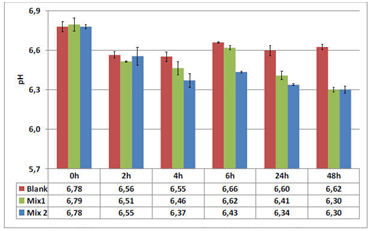 Gas production is too a major endpoint of fermentative activity by gut bacteria. In this study, gas production was the strongest during the first 24h of incubation (Figure 2).