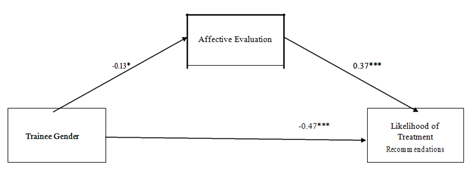 Figure 3 Path diagram illustrating the direct effect and causal path linking trainee gender and likelihood of treatment recommendations.