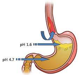 Most patients (8 out of 10) showed an acidified segment extending from the proximal stomach into the esophagogastric junction (EGJ) while fasting, and this condition persisted after eating. Alginate-Antacid formulation neutralized the acidified segment in 6 of the 8 subjects shifting the pH transition point significantly away from the EGJ. Alginate-antacid formulations effectively neutralize the acidified segment, successfully eliminating the "acid pocket" in most patients with GERD, making it a well-targeted therapy for postprandial GERD management.16