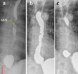 Both radiographs (а, b) indicate increased esophageal tone at the level of the aortic arch, which was responsible for most of the non-esophageal symptoms of GERD. Combined treatment of GERD reduced the inflammatory process in the esophagus, which was accompanied by a decrease in tone, including AES, and a decrease in nonesophageal symptoms.