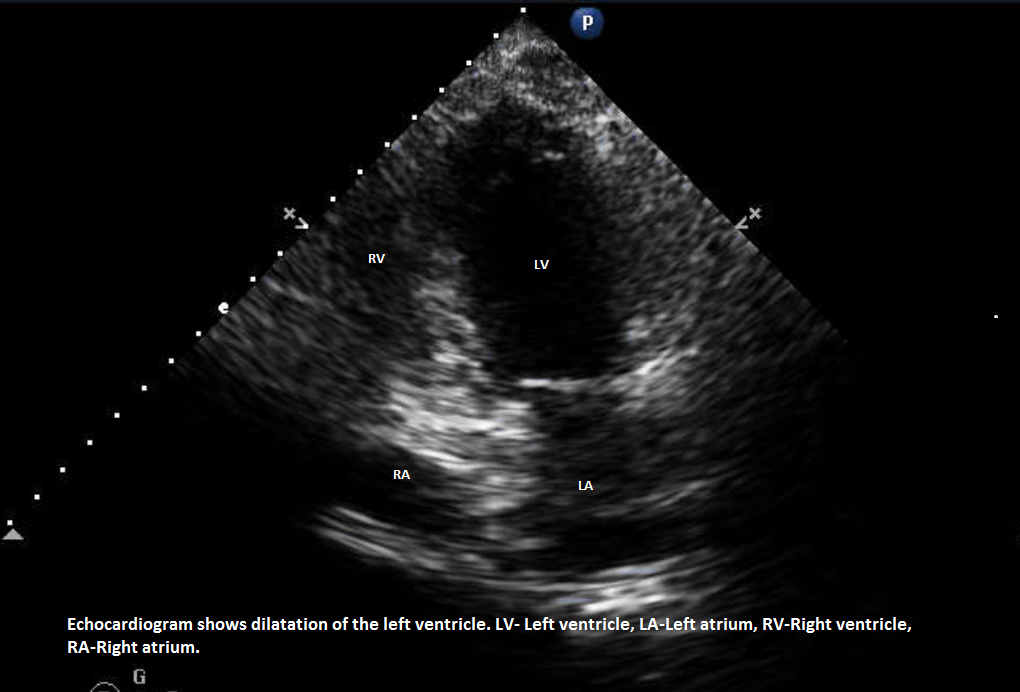 A 52-year-old Asian woman with end-stage liver disease (ESLD) due to Hepatitis B and C complicated by ascites had undergone an orthotopic liver transplant in summer 2016. Her MELD (Model for End-Stage Liver Disease) score was 25 at the time of liver transplant. Pre-transplant Echocardiogram showed normal left ventricular Ejection Fraction EF of 60-65% with evidence of hepato-pulmonary shunt. Nuclear stress test showed an EF of 73% and study was inconclusive, subsequently, she underwent coronary angiography which showed normal coronaries without any evidence of obstruction. On 2nd day post-surgery, she developed shortness of breath, chest pain, and hypoxemia. She had new onset of S3 heart sound and lower extremity edema. She was intubated and central line and Swan-Ganz catheters were placed. She was started on intravenous diuretics and pressors combination with Epinephrine and Dobutamine. Swan-Ganz catheter noted severely elevated right-sided pressures. Echocardiogram showed systolic dysfunction of the left ventricle with EF of 10%, severely hypokinetic left ventricle with apical ballooning. The right ventricle was dilated. EKG showed normal sinus rhythm with low voltage unchanged from prior EKG. Lab results were consistent with shocked liver and elevated liver enzymes, lactic acid, and acidic PH. Coronary angiogram was not performed due to renal insufficiency which later improved without dialysis. With clinical improvement, her repeat Echocardiogram showed a remarkable improvement in EF to 50% which was consistent with our diagnosis of stress cardiomyopathy. She remained clinically stable and she was discharged in a stable condition without further complications. On follow up she was found clinically stable with good graft function (Figure 1).