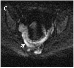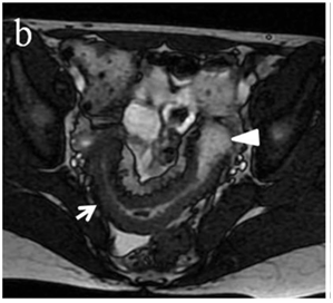 In our opinion, however, remains a fundamental need to get a good bowel distension and to correlate the findings of DWI sequences with those of MR enterography because the spatial resolution of DWI sequences is rather low and even a little bowel stretches can have high signal intensity.46