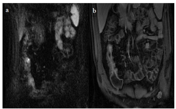 Despite the small sample, the results of our study are encouraging, but further studies on larger samples are needed to demonstrate that the addition of sequences DW-MRI may play an important role in the management of Crohn's disease and replace endoscopy. We hope that the DWI sequences will be included in study protocol and added to conventional morphological sequences as they can provide functional information and quantitative measures that cannot be obtained by other imaging modalities or with other traditional clinical indices.