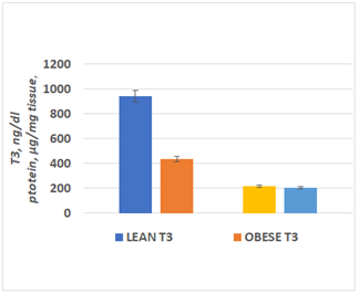 Figure 6 Measures of tissue T3 and protein concentrations in lean and obese rats.