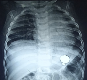 In children foreign body ingestion is a potentially serious problem at times that peaks six months to three years of age. Severe morbidity occurs in less than one percent of all patients, and 1,500 deaths per year occurs due to ingestion of foreign bodies in the United States approximately.1,2 In contrast to adults, 98% of foreign body ingestions (FBIs) in children are accidental, noticed to medical attention as ingestion was witnessed or reported, usually involves common objects found in the surroundings, such as coins, toys, jewelry, magnets, and batteries.2,3 Children may present with symptoms, like stridor, drooling, fussiness, chest pain, abdominal pain, feeding refusal, wheezing, fever and respiratory distress, also some children may be completely asymptomatic, brought in medical attention as ingestion witnessed by a care giver.