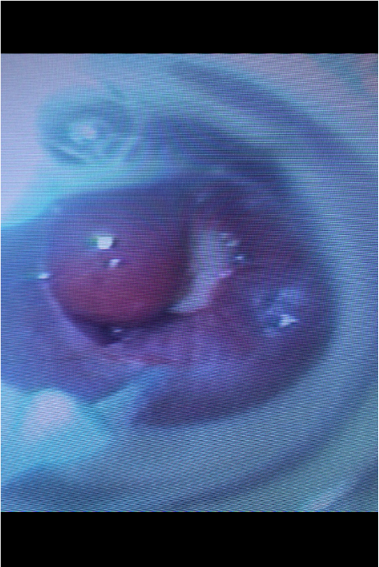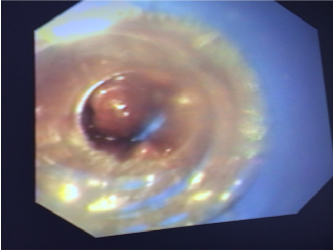 Figure 2 A black elastic rubber band ligator just applied on a pile column by a video colonoscope using the forward approach.
