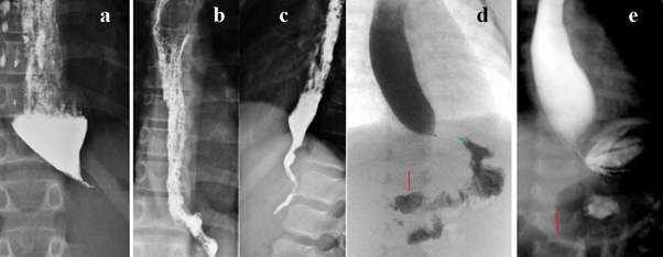 2) X-ray picture of GERD in 4 patients with peptic stenosis of the LES
