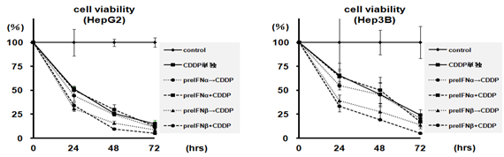Aims: To use hepatoma cell lines to compare the growth-suppression activity of IFN-α and β, in the context of enhancing cisplatin’s effects.