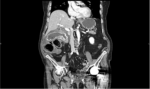 The control abdominal CT scan showed a significant reduction in the previously observed gallbladder wall oedema and no signs of complications. The bile culture returned positive for E. coli, Klebsiella pneumoniae, and Candida albicans. Blood results showed a critical increase in C-reactive protein levels, white blood cell count, and neutrophil levels, as shown in Table 1. Empirical antibiotic therapy was subsequently initiated with ciprofloxacin and metronidazole, followed by a switch to cefepime after the antibiogram realisation for ten days of antibiotic coverage. Inflammatory markers progressively decreased, and the patient was discharged.