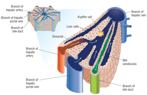 The wall of sinusoids is separated from hepatocytes by the perisinusoidal space or the Disse space. Sinusoidal capillaries are lined with endothelial cells and Kupffer cells. The endothelial lining of sinusoids is lamellar and fenestrated, and therefore metabolism occurs unhindered between blood and hepatocytes.