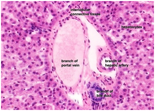 The main functional unit of the liver is the hepatic lobule, which is a structure of a cylindrical hexagonal shape with a length of several millimeters, the diameter of the lobule varies from 0.8 to 2mm. Human liver consists of 50,000-100,000 individual lobules. The liver lobule slice is located around the central vein, which opens into the hepatic vein, which, in turn, is a branch of the inferior vena cava basin.
