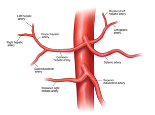 An important contribution to the study of the structure of the arteries of the liver made E.Z. Browne.19,40,43 For the first time E.Z. Browne in his work defined such terms as "common" and "proper" hepatic arteries. He designated the part of the hepatic artery extending from the celiac trunk to the place of the discharge of the gastro-duodenal artery as a common hepatic artery.43 And the part of the artery going from the gastro-duodenal artery to the site of division into the right and left hepatic branches should be considered as proper hepatic artery.