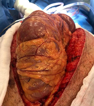 Figure 2 Eviscerated colon immediately after laparotomy. Taken 12/18/21 with permission of the patient, in the archives of Alejandro Weber M.D. chief surgeon.