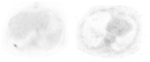 Patient was discharged from the hospital at day 22. Control PET/CT was negative and no longer showed the hepatic lesion on segment VII (Figure 4). Colonoscopy was performed 6 months after the first surgery without significant findings, and he underwent re-connection of the colon transit through a laparoscopic approach. The metastatic nodule over the liver was searched for even with the laparoscopic ultrasound and indocianyne green, but it was no longer found. The patient had an uneventful recovery from the surgery, tolerated oral diet on day three, and was discharged from hospital on day five. Patient is still in close follow-up receiving adjuvant chemotherapy to this day without any evidence of recurrence, and doing his daily routines uneventfully.