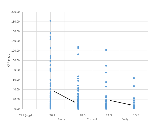 Statistical analysis was performed using JMP software from SAS. Numeric variables were evaluated using ANOVA and character variables using Chi-Square Pearson Analysis. Matched Pairs analysis was used to compare early and recent changes in individual patients.