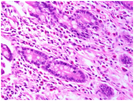 Eosinophilic gastroenteritis was first described by Kaijser3 Eosinophilic gastroenteritis can involve any part of gastrointestinal tract from the esophagus down to the rectum, with stomach and duodenum being the most common sites of involvement.4,5 Clinical manifestations of the disease depend on the site of eosinophil infiltration. Mucosal disease presents as protein losing enteropathy, bleeding or malabsorption, muscle layer infiltration may cause bowel wall thickening and intestinal obstruction. The subserosal form usually presents as an eosinophilic ascites. Majority of the patients give a history of seasonal allergy, atopy, food allergy, asthma and elevated Ig E levels, indicating hypersensitivity to contribute to the pathogenesis of eosinophilic enteritis.6 Presence of gastrointestinal symptoms, eosinophilic infiltration, exclusion of parasitic disease and absence of other systemic involvement with or without peripheral eosinophilia provides a clue to the diagnosis of this disorder. Dietary modification and steroids remains the mainstay of treatment. In steroid resistant cases, alternative options for management include use of mast cell stabilisers, interleukin inhibitors, mepolizumab and immunosuppression.7–10