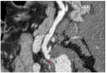 The celio-mesenteric arterial blood flow assessment is a paradigm in surgical planning and management of cephalic pancreatic cancer. Numerous anatomic variants of the celiac axis (CA) are described, with an estimated prevalence of 10 to 50%. Their awareness is of great importance.1 In addition, CA stenosis prevalence is reported in as high as 25% of all patients and 5% of those submitted to pancreatoduodenectomy.2–5 The main etiologic factors are severe atherosclerosis and arcuate ligament syndrome,2 but literature is conflicting regarding their prevalence. Extrinsic tumour compression, dissection, aneurism are less prevalent aetiologies.1