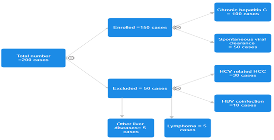 The exclusion criteria were HBV or HIV co-infection, Alcohol ingestion, other etiologies of chronic liver disease, patients with HCV related HCC and patients with other malignancies (Figure 1).