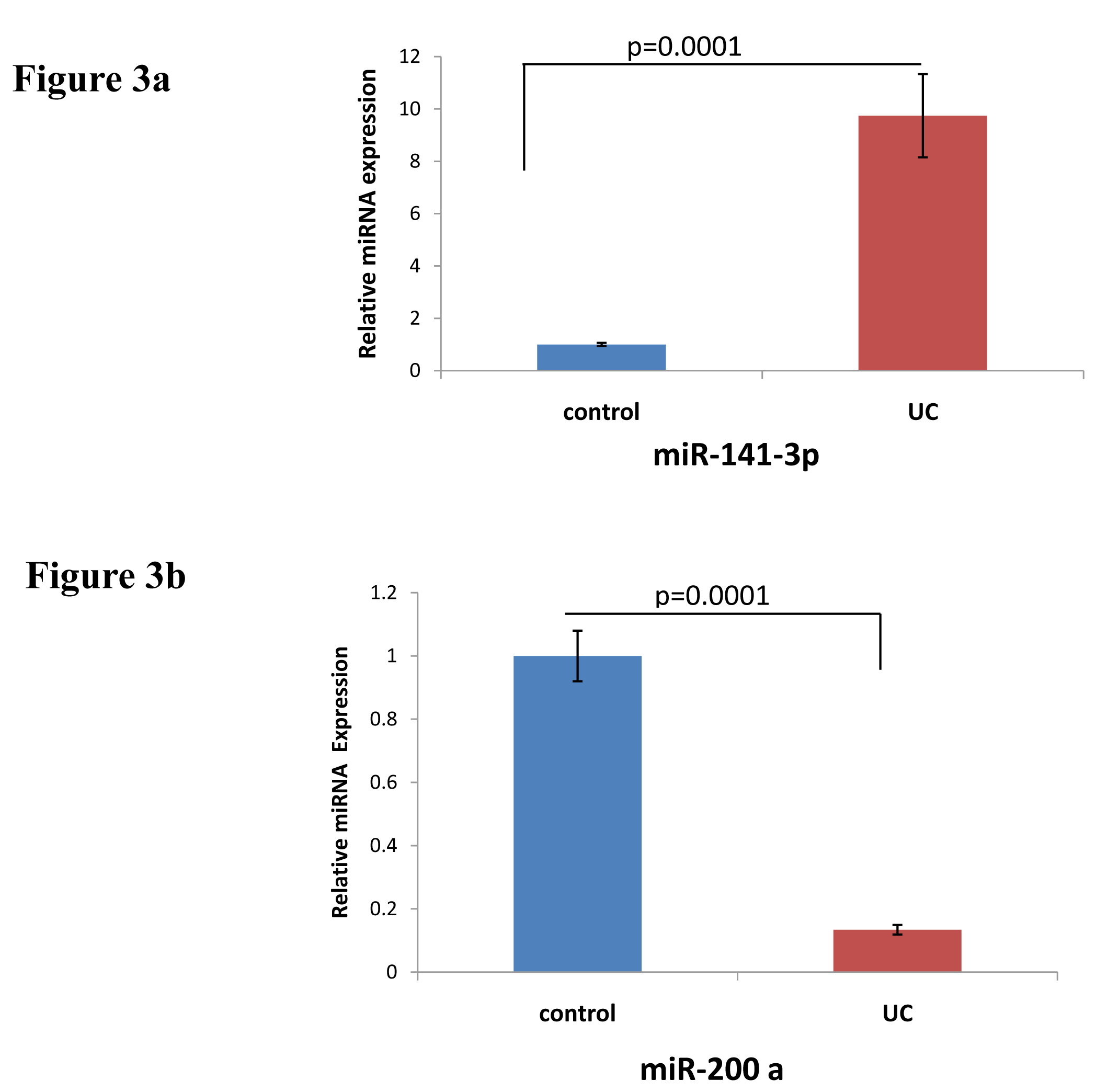 Results: Expression of CXCL-12β was increased in UC compared to controls. MiR-141-3p and miR-200a-3p were predicted to target CXCL-12β. Expression of miR-141-3p was upregulated and expression of miR-200a was downregulated in UC compared to controls. In vitro studies using reporter assay proved CXCL-12β as a target miR-200a. Expression of CXCL-12β increased while expression of mir-200a decreased in the cancer prone, rectosigmoid area of colon.