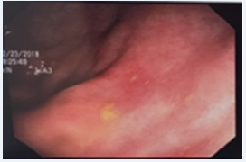 Figure 1 Evidence of upper Digestive Endoscopy with active duodenal bulb ulcers (Sakita's A1 classification) and partial duodenal stenosis at second duodenal portion.