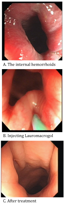 Citation: Guo J, Lin M, Zhang D, Yang T, Hong C, et al. (2014) Successful Colonoscopic Sclerotherapy for Bleeding Internal Hemorrhoids with Lauromacrogol.Gastroenterol Hepatol Open Access 1(4):00023. DOI: 10.15406/ghoa.2014.01.00023