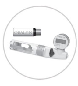 The Obalon® Gastric Balloon (OGB, Obalon TherapeuticsInc, Carlsbad, CA, USA) is a gas-filled balloon with a maximal volume of 250ml. The balloon contains a self-sealing valve connected to a thin catheter. Once the capsule is ingested, the catheter extends from the stomach to outside the body through the esophagus and the mouth. Fluoroscopy is used to verify that the capsule has entered the stomach. The catheter is attached to the balloon for remote inflation using a gas-filled canister. After balloon inflation, the catheter is detached and removed. Balloon removal is performed by upper GI endoscopy, under sedation without tracheal intubation.