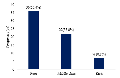 Socio-economic status more than half of the respondents was poor (55.4%) and others were middle class (33.8%) and rich (10.8%).