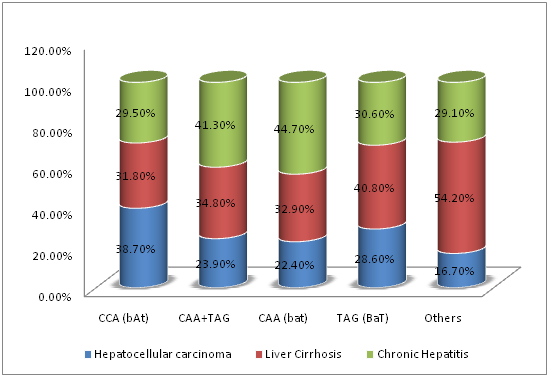 Moreover, the implications of BsmI, ApaI, and TaqI polymorphisms on the severity of chronic liver diseases of HCV patients were also investigated in the current study. The carriage of either ApaI CC genotype or CCA[bAT]-Haplotype had a significantly higher prevalence of HCC, pre-existing liver cirrhosis and a significantly lower serum 25-Hydroxy-Vitamin D3 concentrations (25-OHD) compared to other genotypes or haplotypes (P <0.05 for all). On the other hand, other SNPs polymorphisms (BsmI and TaqI) were not related to disease severity (p> 0.09).