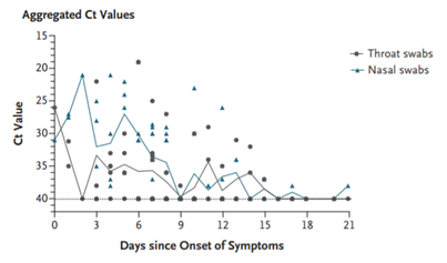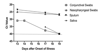 Values of viral load in nasal and throat samples from severe symptoms and asymptomatic patients show importance in the first three days of the infection,27 the cycle threshold (Ct) values corresponded to the viral load Table 1 & Figure 1.