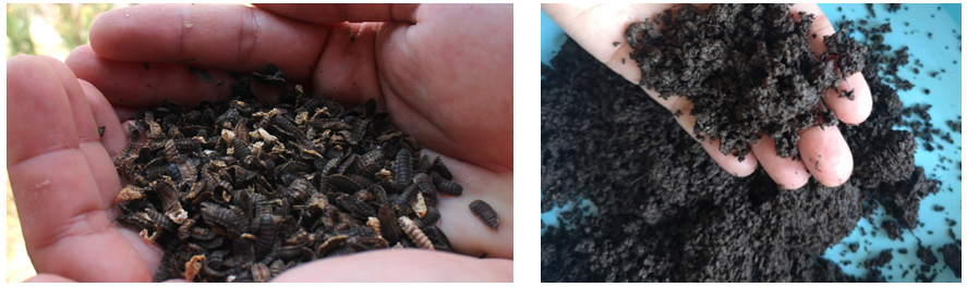 Figure 4 Role of BSF in the flow of products obtained in the process of composting organic leftovers from farming and livestock, in a context of circular economy.