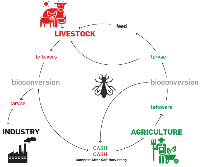 In short, by reducing the inflow of resources, recycling leftovers and minimizing waste, proficiently provided by BSF (with greater speed, more hygiene, and valorization of the products it generates, than with other composting systems) the main requirements of the circular economy systems in the agrarian environment are fulfilled.