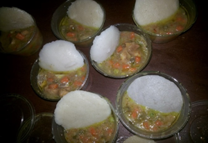 Sensory Evaluation: The created idli samples were coded and given to a 20-person panel from the University of Nigeria, Nsukka's department of Food Science and Technology for sensory evaluation. As illustrated in Figures 8 and 9, the formulated Idli samples were delivered both alone (without accompaniments) and with accompaniments.