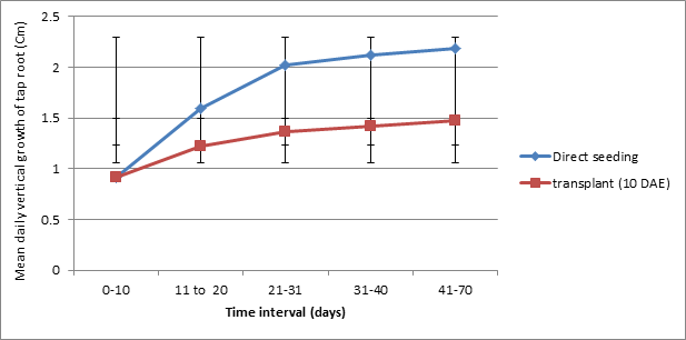 Effect of transplanting on growth of tap root