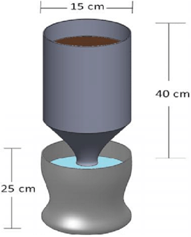 In Z. mays seeds were disinfected with the same procedure described in section a); for every 10 seeds they were inoculated with 1 mL of A. niger, G. virens, R. oligosporus at a density of 1.5 x 10-8 PFU (propagule-forming units) /mL calculated based on a viable plate count in Agar Sabouraud. Subsequently, in the upper part of the Leonard jars (Figure 1), 4 seeds of Z. mays with or without A. niger, G. virens, R. oligosporus were sown as described in the randomized block experimental design with two controls, three treatments and six repetitions (Table 1): Z. mays without endophytic fungi irrigated only with water or absolute control (AC); Z. mays untreated with endophytic fungi, R. oligosporus fed with 100% NPF or relative control (RC); Z. mays inoculated with A. niger, G. virens or R. oligosporus with 50% NPF in a mineral solution with the following chemical composition (g.L-1): NH4NO3 12.0, KH2PO4 3.0, K2HPO4 3.5, MgSO4 1.5, CaCl2 0.1, FeSO4 0.5mL/L, and 1.0mL/L of the trace element solution, the pH was adjusted to 7.0. The response variables were based on phenology: plant height (PH) and root length (RL); in the biomass: aerial fresh weight (AFW) and radical (RFR); for the aerial dry weight (ADW) and radical (RDW).9 The experimental data obtained were analyzed by ANOVA and Tukey (P≤0.05), to establish the minimum difference.12
