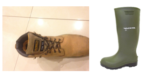 Safety boots should also be worn during application. It can be noted that wellington boots are suitable for such application as they are easy to clean after and reduce pesticide exposer. It is also important to have them with metal caps to protect your toes in case some heavy equipment fall on them. Figure 12 shows safety boots recommended for CIPC thermal fogging.