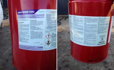 The pesticide active ingredient used in this case is Chlorpropham or CIPC. The trade name is GRO-Stop fog and it is supplied by Certis (Figure 19). The container contains 25L of concentrated CIPC in a liquid format. It is common in pesticides to mix them before use. However, CIPC is used without mixing or dilution.
