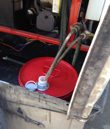 Figure 21 Connecting the 25L CIPC container for potato thermal fogging to the thermal fogger (Author's own work, 2017).