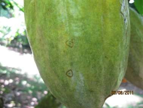 Cocoa pod borerThe species is called Carmenta foraseminis. It is a small butterfly with transparent wings whose damage is caused by the larva or worm feeding on the fruit (Figure 11).