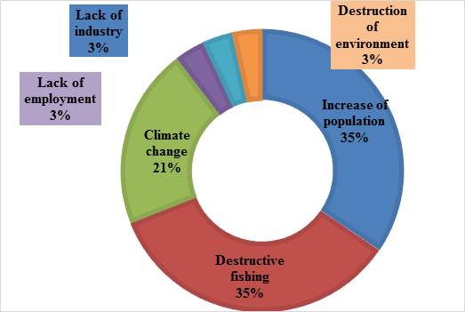 The study revealed a change in the coastal resources and management measures. The perceived changes were resulted from the increased extraction and destruction of natural resources. Through key informants and household questionnaire changes in coastal resources, reduced fish catches, decreased agricultural production and affected the local livelihood activities along the coastal area. Figure 2 indicates the perceived cause of changes in coastal resources and activities.
