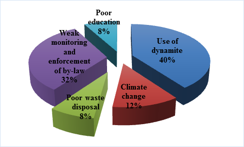 The low levels of investment in artisanal fisheries, as much needed for household consumption increased challenges to the coastal resources. The economic hardship propels many people to enter in artisanal fisheries that increased the number of fishfolks compared to the number of fish catch. This increased the struggle and involvement in environmental degradation through dynamite and or mangrove clearance. Figure 3 indicates the adverse implication of coastal and marine resources management.